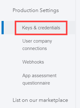 When you've completed all the requirements and your questionnaire responses have been approved by Intuit, the page updates to display the production keys for your app (the Client ID and Client Secret) on the Keys & OAuth page.