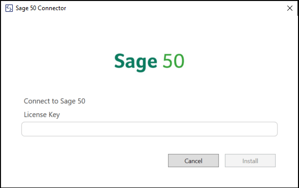The user should have been provided with a License Key when they downloaded the Sage 50 Accounts Connector. They should enter this in the License Key box and then click Install.
